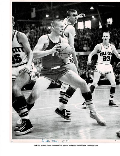 Dick Van Arsdale in action in 1961 at Butler Fieldhouse. Courtesy of the IN Basketball Hall of Fame.